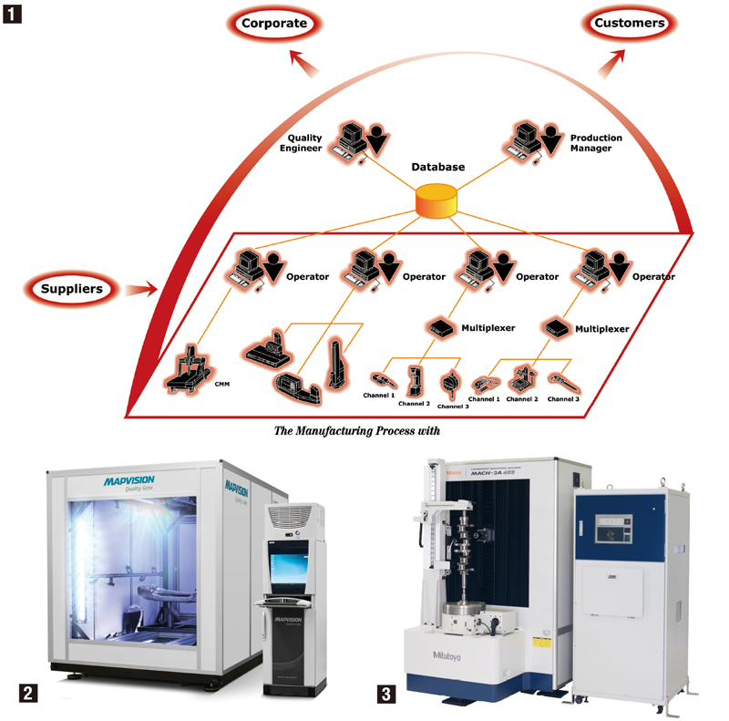 - ①計測データをリアルタイムに統計処理し、品質情報が一元管理・共有化できる「MeasurLink」
