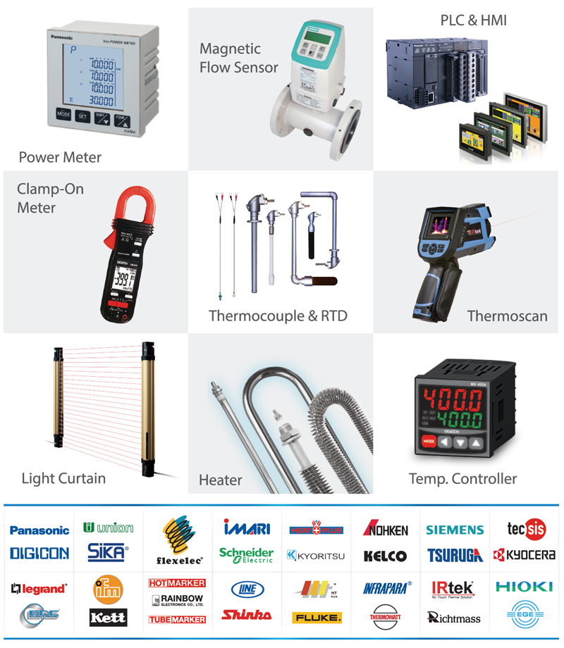 扱うメーカーの多くは日系企業で、パナソニックのFA機器・レベルセンサ、流量測定のNOHKEN、温度計測制御のSHINKO、ソーラーシステムの京セラのほか、欧州ブランドのシーメンスなど、幅広く揃える。中でも、パナソニックにおいては、FA関連の代理店として、長年取り扱い量No.1を続けている。
