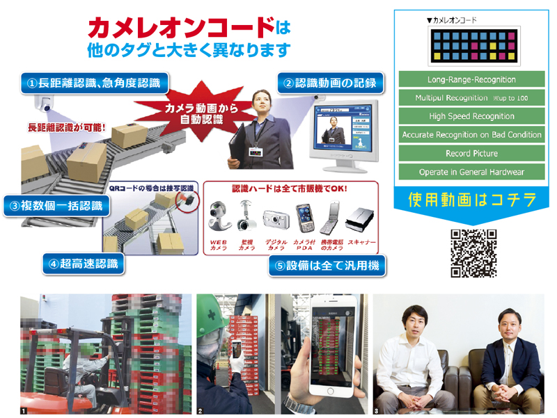「一瞬にして距離や速度、明暗関係なく読み取るため、定点カメラを設置しておけば広範囲の作業をすべてデータ化することが可能です。さらには、工程記録も動画のデータ化にも対応。製造業における入庫から製品出庫までの管理はもちろん、商社や公的機関などで取り扱う膨大な書類の処理を迅速化、管理・保管や抽出も驚くほど楽になります」と佐野真樹ゼネラルマネージャー。カメレオンコードは適用範囲が非常に広く、可能性が無限大だ。