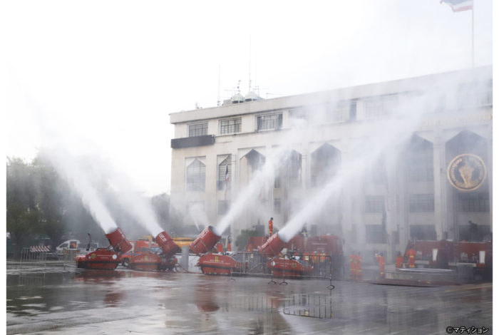 大気汚染を深刻と捉えたタイ政府も、N95マスクをチャトチャックやルンピニ公園などで、無料配布を開始したほか、14日には空軍が航空機(BT−67)2機を発進。上空からバンコク首都圏への水撒き、人工雨(Royal Rain)、ディーゼル車の規制といった対策を打ち出している。