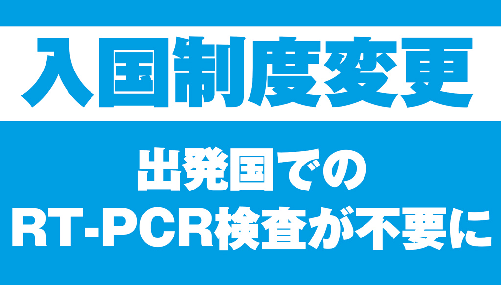 出発国でのRT-PCR検査は不要。Test&Go、サンドボックス、通常入国のすべてに適用される。