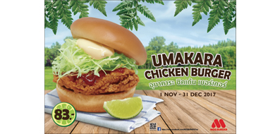 基本的なメニューは日本と同じです。タイではフィッシュバーガーや照り焼きチキンバーガー、モスチーズバーガーが安定した人気を誇っていますね。お客さまを飽きさせないために、隔月でタイならではの期間限定メニューも考案しています。前回は、タイ人にも大人気のくまモンとコラボした「くまモンライスバーガー」を販売して大きな反響を頂きました。今月から年末にかけては、「旨辛チキンバーガー」を販売中です。