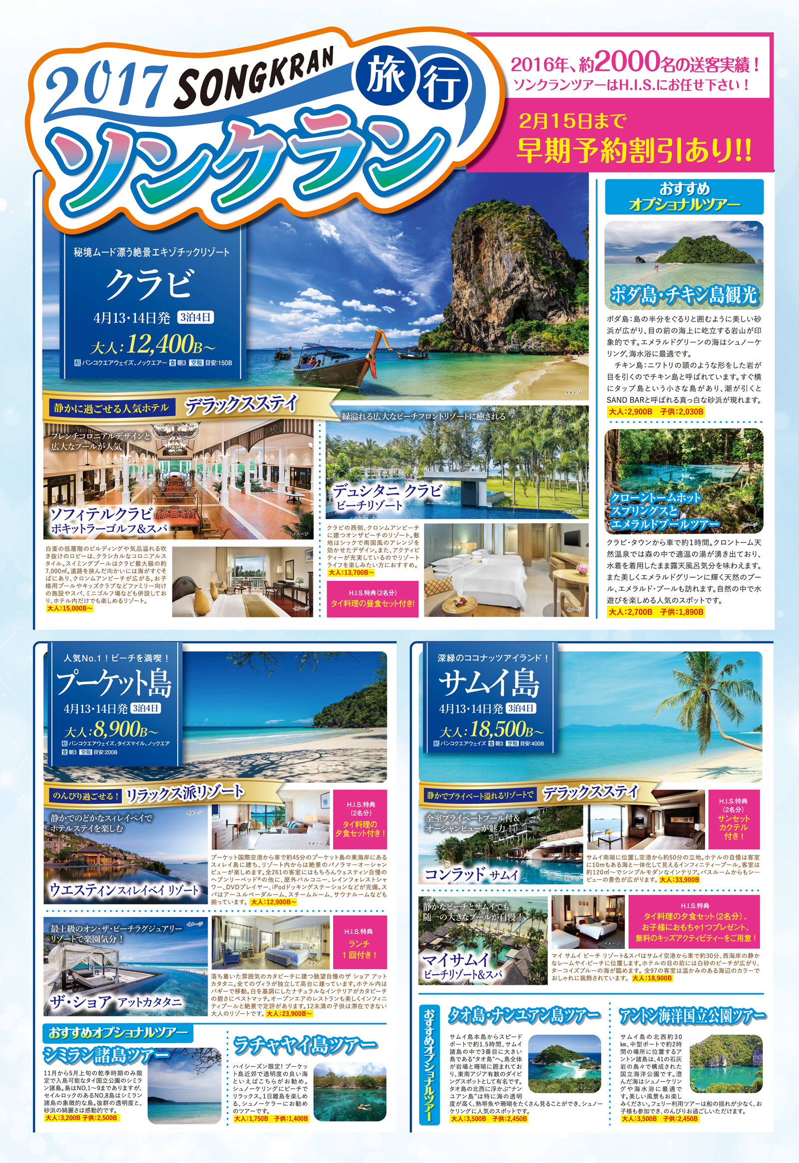 抜けるような空と、美しい白い砂浜、透き通るような青い海。タイにはアジア有数のビーチリゾートが多く点在しています。今回は、定番リゾートから、まだあまり知られていない穴場のビーチリゾートや離島を4ヵ所ピックアップ。今年のソンクランは、ビーチリゾートで思い思いに過ごしてみてはいかがでしょうか。