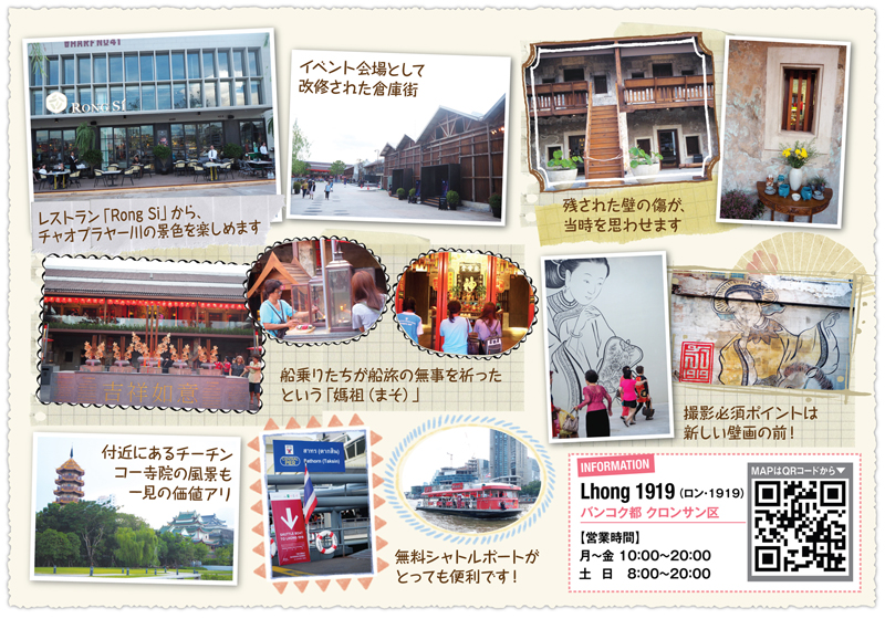11月3日に公開されたばかりの新名所「Lhong1919」。チャオプラヤー川沿いのクロンサン区内にあり、ラマ4世の統治時代(1851〜1868年)には貿易港として名を馳せました。当時はタイ、中国間貿易の黄金時代と言われましたが、社会の発展とともに貿易は廃れていきました。