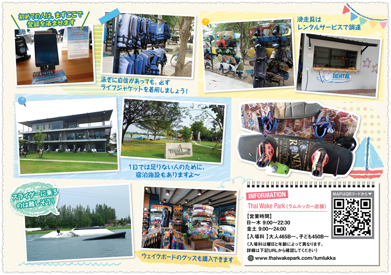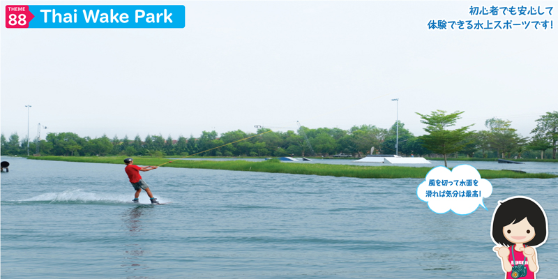 海で体験するには、一番近い場所でもバンコクから片道2時間かかりますが、なんとバンコク郊外でも楽しめる場所があるのです! その名も「Thai Wake Park」。都心から車で小一時間ほどの、隣県パトゥムターニーのクローン・ホック内にあります。