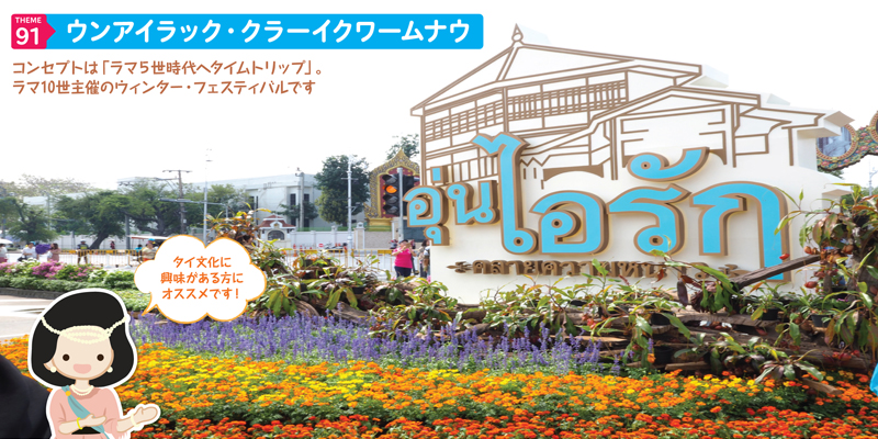 ドゥシット地区にある宮殿前広場にて、3月11日まで、チャクリー王朝が残した功績を振り返る「ウンアイラック・クラーイクワームナウ」が開催されています。国民に1日でも早くラマ9世ご崩御の哀しみを乗り越え、未来へ向かって歩んでほしいというラマ10世の想いから企画されました。