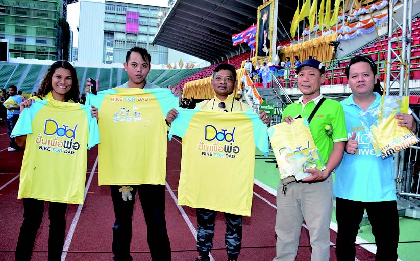 28日、バンコク・ナショナルスタジアムで、12月11日に開催する「Bike for Dad」の参加者らが、ワチラーロンコーン皇太子から恩賜として、Tシャツ、リストバンド、バッヂを受け取った。(29日=マティション)