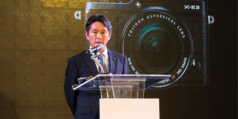 Xシリーズ最小・最軽量のX-E3を発表する現法経営陣