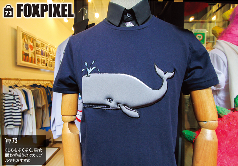 人気は、定番でもある“ぷくぷく”と浮き上がるデザインをあしらったTシャツやポロシャツ。デザインモチーフには、サメ、キツネ、シロクマ、フラミンゴ、ペンギン、クジラといった動物柄のほか、最近ではミルクやバナナ、卵といった朝食をコンセプトにしたシリーズもあります。新作は、毎月並ぶので、要チェックです。
