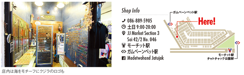 デザインは、すべてオーナー自らが手がける一点モノが多く、以前買った商品と同じものが欲しければ、写真を見せれば作り直してくれるそうです。気軽にオーダーメイドも受け付けているので、世界に一つしかない自分好みのアクセサリーはいかがでしょう。素材は、シルバー(97%)なので、お手入れも歯磨き粉で拭き取るだけで簡単です。