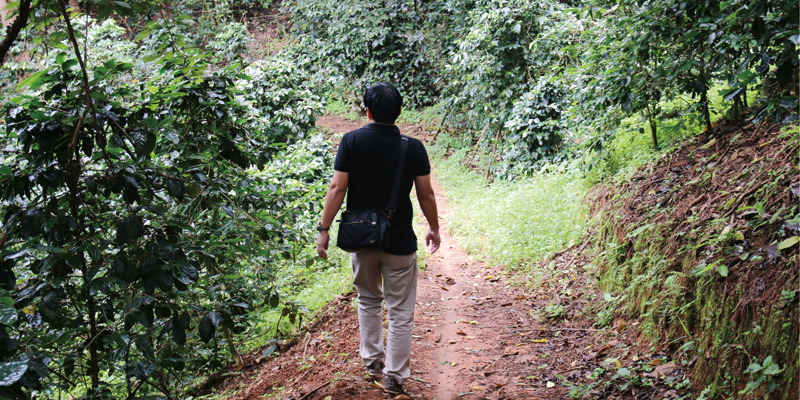 「こんなに背の高いコーヒーの樹は他ではありえないですよ」。農園を一緒に歩きながら、そう話してくれた今中さん。人の手によって刈り揃えられるのでなく、自然のままに育てられたコーヒーの樹を誇らしげに、そして愛情たっぷりに紹介してくれました。