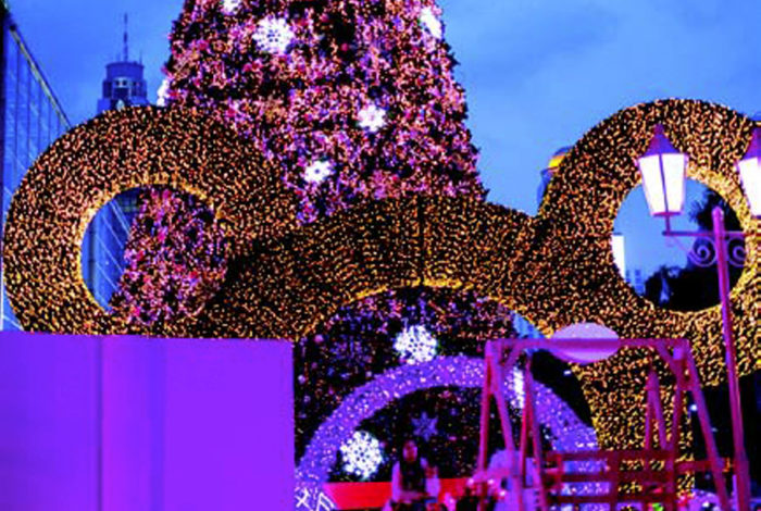セントラルワールド前の広場には、タイ最大の高さ36mを誇るクリスマスツリーが飾られ、「AHappyFairytale」というイベントを開催。今年は、ディズニーとタイアップを行い、キャラクターをかたどったイルミネーションが人気を集めている。