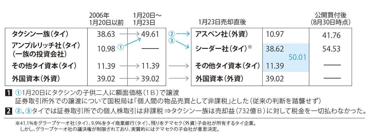 長谷場:タクシン首相は「これが一族企業への利益誘導疑惑を断ち切る切り札」と説明しています。要するに「一族が企業を所有しているから批判を受けるのであって、売ってしまえばもう批判を受けないだろう」と。
