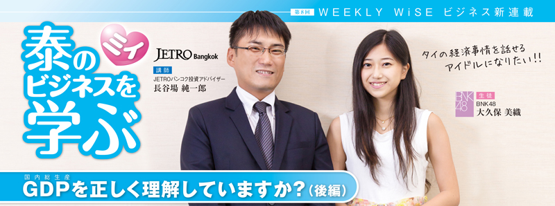長谷場:はい。日本みたいにGDPが大きい国とタイを、増えた「金額」で比べてもあまり意味が無いので例えば前年に比べて何%増えた、という「割合」で比べるんです。物価の変動を加味したこのGDPの増減割合を「実質経済成長率」と言います。例えば、日本は2016年1.00%の増加でしたが、タイは3.2%の増加でした。