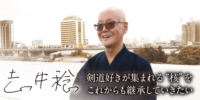 今回の取材場所は、志井さんのご自宅があるコンドミニアム。稽古場だという屋上を覗くと、コンクリートの塀に竹刀の跡を発見。「屋上が“最高の師”であり、剣友会が“最高の教え”です」と志井さん。その晴れやかな表情に青春の文字が見えました