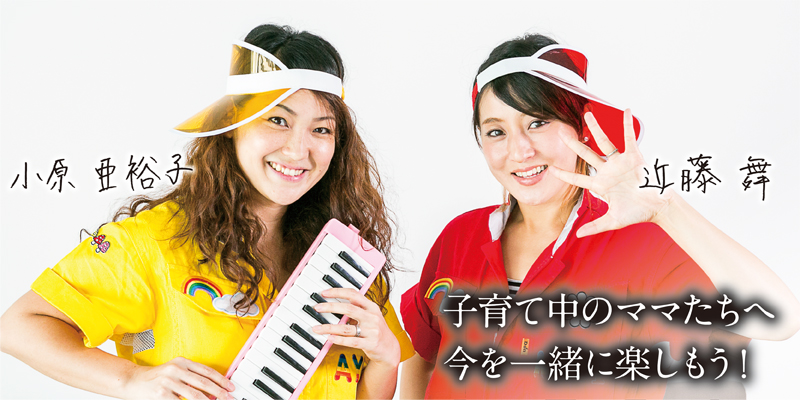 助けられた分、「すくすく会」に恩返しがしたいと、ボランティアを志願した場で出会った2人。「自分も周りのお母さんも、みんなが楽しくて充実した子育ての“場”を創りたい」という気持ちを確かめ合ったのを機に、意気投合。歌や踊りが人の心を明るくすることを知っている彼女たちは、音楽を小原さん、歌とダンスを近藤さんが担い、2人のトークでステージを創るユニット活動にたどりつきました。