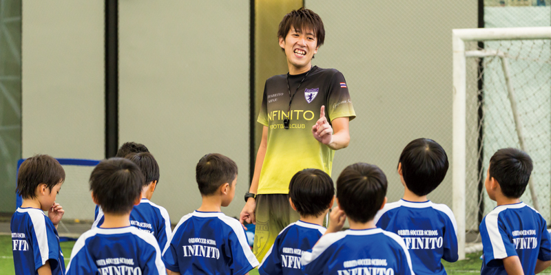 「Inf inito Soccer School」コーチ。1992年生まれ。岐阜県出身。中学生からサッカーを始め、2010年から2年間、スペインとドイツでプロサッカー選手としてプレイ。ケガのため選手から指導者の道へ進み、14年に来タイし現職へ。趣味は読書とコーヒー。