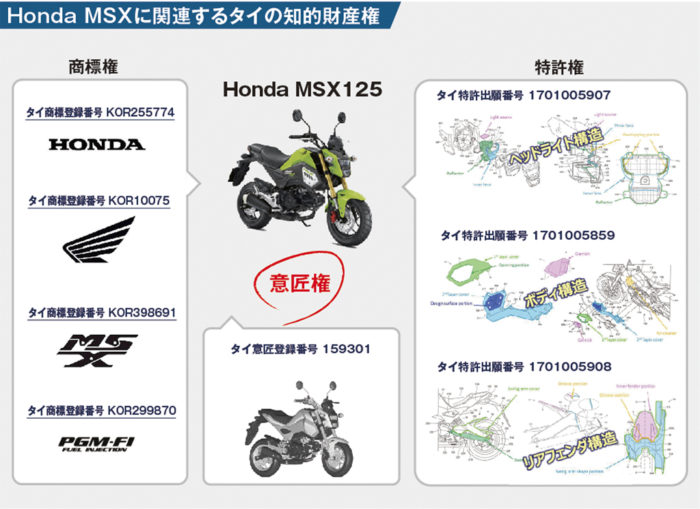 Hondaがタイで販売するオートバイ「MSX125」は多くの商標権や特許権、意匠権を申請・取得していました。