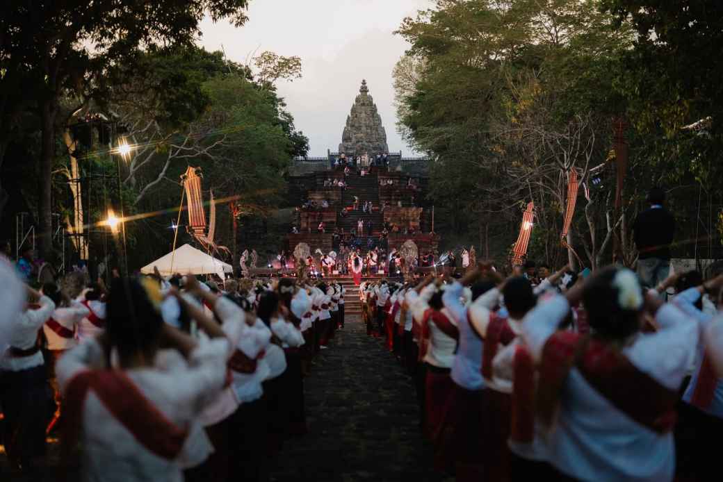 東北部ブリラム県のパノムルン歴史公園で、恒例の「パノムルン祭り」が4月3〜5日に開催された。古代クメール遺跡を舞台に壮麗な儀式が再現され、今年はミス・ワールド2025の「オパール=スチャーター・チュアンシリー」さんも参列。夕日が15の門を一直線に貫く神秘的な自然現象に合わせ、地域の文化と観光の魅力を国内外に発信する華やかな祭典となった。