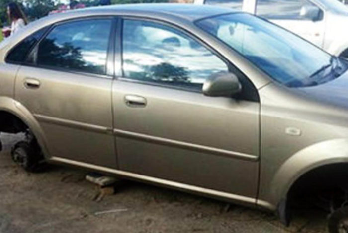 【写真上】停めていた車のタイヤが外されていたら、さすがに驚きは隠せないが、まさか父親の犯行だとは思わなかっただろう