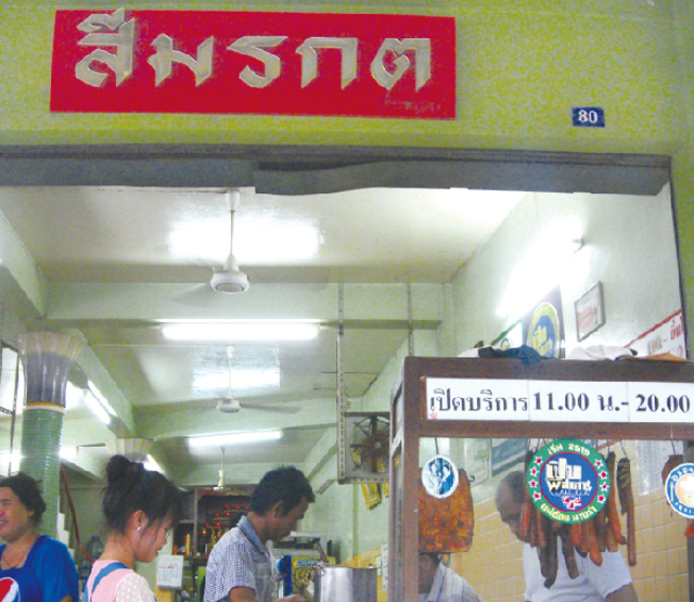 MRTフアランポーン駅1番出口を出て、チャルーンクルン通りを道なりに進みます。途中のY字路を、向かって左のソイに真っ直ぐに進むとセブンイレブンが見えてくるのでそこを左折し、ソイ・スコーンに入ります。少し歩くと右手にお店が見えます。