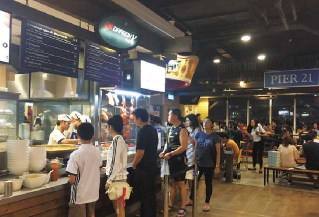 BTSアソーク駅直結、MRTスクンビット駅2番出口からもアクセス可能。Terminal 21の5階にあるフードコート。