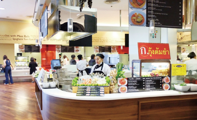 BTSチットロム駅の1番出口から徒歩で10分強。スカイウォークで直結するセントラルワールドの7階のフードコート内にあります。