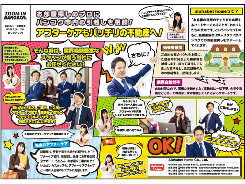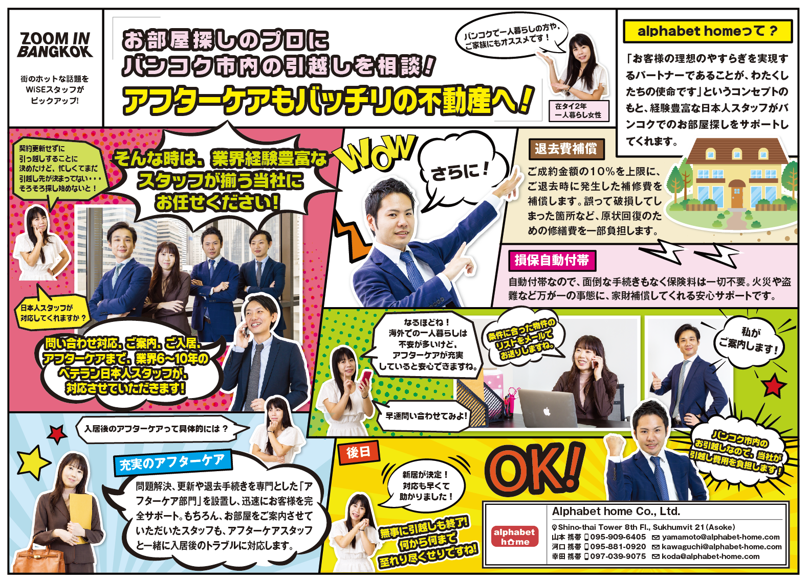2018.03.1 ZOOM in BANGKOK VOL.84 : Alphabet home Co., Ltd. alphabet homeって? 「お客様の理想のやすらぎを実現するパートナーであることが、わたくしたちの使命です」というコンセプトのもと、 経験豊富な日本人スタッフがバンコクでのお部屋探しをサポートしてくれます。 拡大して見る場合は、「新しいタブ」で開いて下さい この記事をSNSでシェア! Tweet Share LINE リンクをコピー