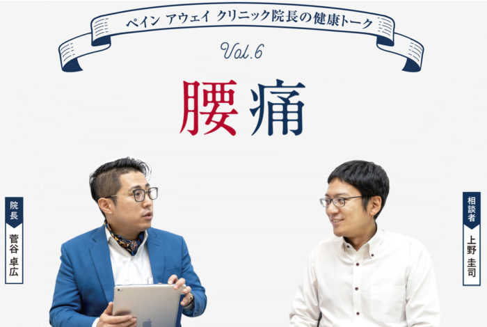 長時間同じ体勢で座る、猫背など、普段何気なくとっている姿勢が原因で腰痛になる人は多いという。以前は、腰に痛みを感じてもすぐに治っていたという「at ease」の上野代表。腰痛の改善法について、痛みを取り去る専門家・菅谷院長に伺った。