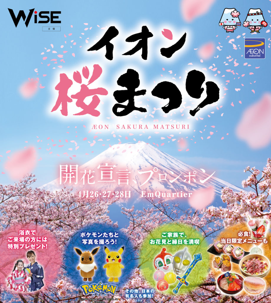日本の春の風物詩「桜」をテーマにした、初の主催イベント。約100本もの「桜」が並び、会場をピンクに染め上げる。中には、高さ6メートルに及ぶ木も。飲食ゾーンにはバンコクを代表する“本格派”が顔を揃え、ステージでは親子で楽しめる企画も目白押しだ。日本とタイを知り尽くしたメディアだからこそできる、かつてないイベントに乞うご期待!