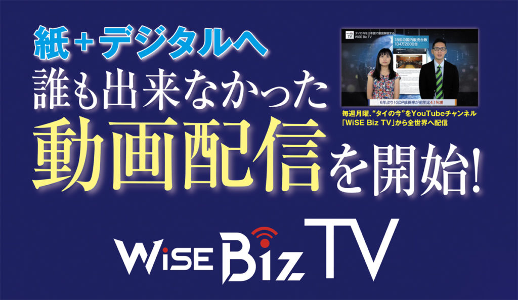 2019年1月28日。「タイの今を日本語で徹底解説する」と謳ったニュース動画番組「WiSE Biz TV」の配信を開始した。創刊から16年、毎週欠かさず発刊を続ける週刊ワイズが蓄積した“情報収集力と編集力”によるシナジーを生かした新コンテンツだ。昨今、週刊ワイズが加速させるデジタルシフトの原動力となるか。是非とも注目してほしい。