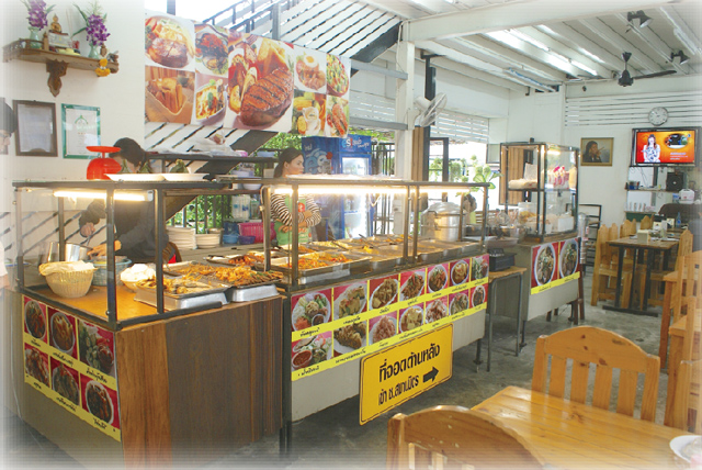 MRTスティサン駅3番出口からタクシーで2分ほど。お店は、ソイ・サマーンミットの入口にあります。