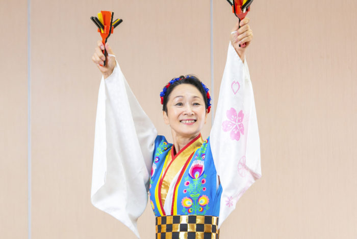 小柄な体を弾ませながら、笑顔で舞う久保さん。踊ることが大好きという気持ちが輝きとなり、見る者を引きつけます。