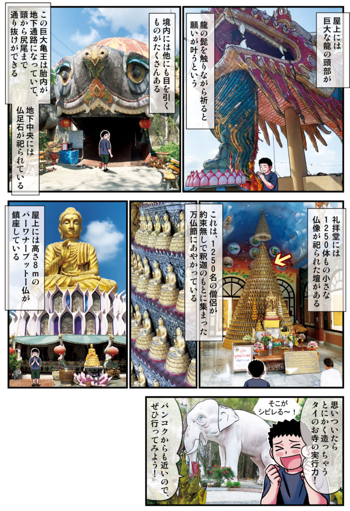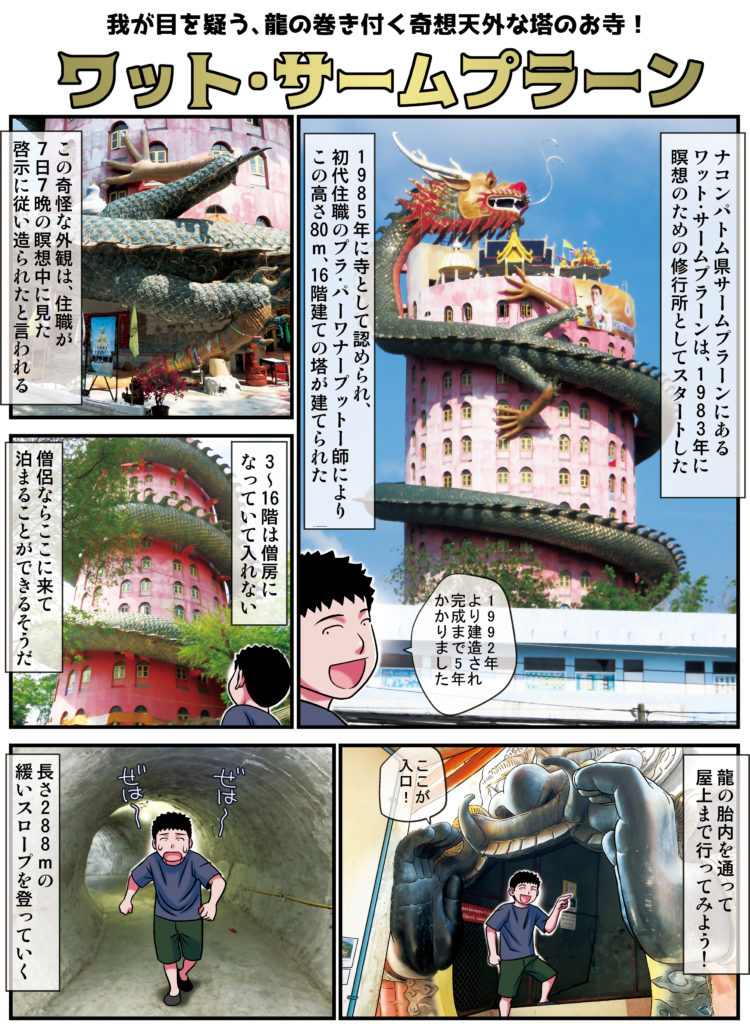 2019.06.4 「漫画で学ぶ」タイのお寺 ワット・サームプラーン「我が目を疑う、龍の巻き付く奇想天外な塔のお寺!」 WAT SAMPHRAN 【場所】「ナコーンパトム県」 【交通】BTSバンワー駅からタクシーで約45分 【時間】毎日8:00〜17:00 【入場料】無料 アンケートをご回答の方に「キッズーナエカマイで使える1人分無料入場券」をプレゼント! 回答締め切り予定:2025年11月16日アンケートの回答はこちらクーポンご利用条件このアンケートの回… THAI SCOUT(タイスカウト)登録するだけでタイ転職の可能性が拡がる タイスカウトは、タイ(バンコクおよびその周辺)で働きたい日本人、日本語堪能なタイ人を対象にしたスカウト型転職サービスです。 サイアム高島屋に新ビューティーゾーン「Beauty Garden」誕生! 世界的なコスメ&ランジェリーブランドが集結 タイで唯一の日本の百貨店「サイアム高島屋」に、新たなビューティーゾーン「Beauty Garden(… この記事をSNSでシェア! Tweet Share LINE リンクをコピー