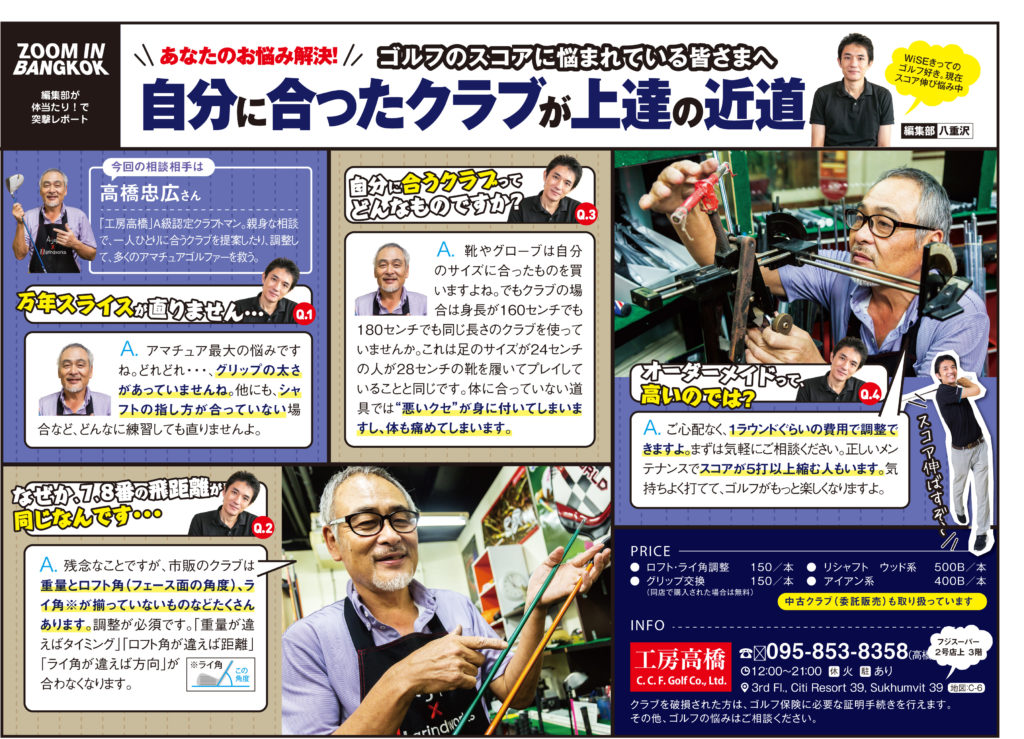 2019.07.22 ZOOM in BANGKOK 工房高橋って? クラブを破損された方は、ゴルフ保険に必要な証明手続きを行えます。 その他、ゴルフの悩みはご相談下さい。 拡大して見る場合は、「新しいタブ」で開いて下さい 工房高橋って? Tel:095-853-8358 Time:12:00〜21:00 Address:3rd Fl., Citi Resort 39, Sukhumvit 39 クラブを破損された方は、ゴルフ保険に必要な証明手続きを行えます。その他、ゴルフの悩みはご相談ください。 この記事をSNSでシェア! Tweet Share LINE リンクをコピー