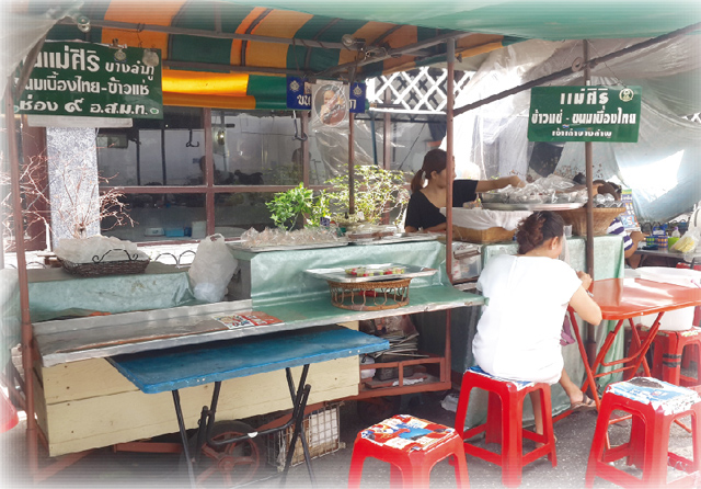 BTSラチャテウィー駅の3番出口からタクシーで約20分。お店は、ボーウォンニウェート寺院近くのプラスメン通りのソイ・グライシーにあります。