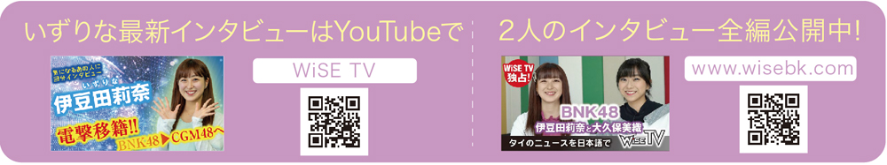 大:私は、BNK48は日本とタイを繋げる役割でもあると思っていて。もともとグループに入る前から日本とタイを繋げる、架け橋になるような仕事をしたいとずっと言っていたので、その意識をしっかり持って、これからも両国を繋げる仕事がたくさんできたらいいなと思いますし、タイで「日本人で知っている人は誰?」って聞いた時に「大久保美織」って言われるようになりたい。日本代表ではないですが、タイでそんな存在になれたらと思います。