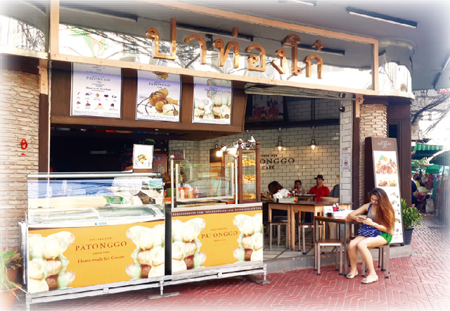 MRTフアランポーン駅からタクシーで約15分。お店は、プラスメン通りとシップサームハーン通りの交差点にあります。