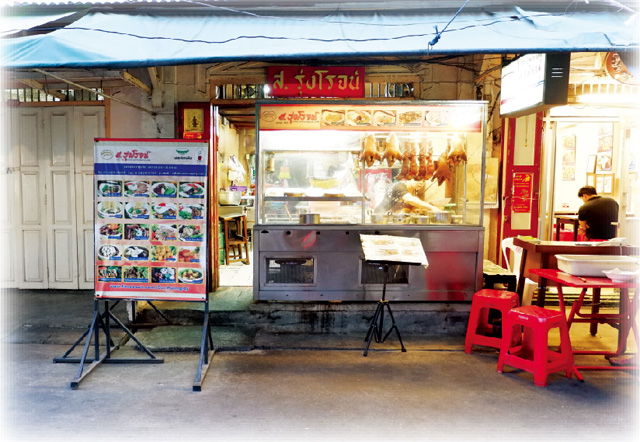 BTSラチャテウィー駅3番出口からタクシーで行くのがおすすめ。お店は、ナコーンサワン通りのナーンルーン市場の中にあります。