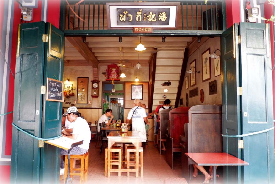 MRTサムヨット駅からタクシーで約10分。お店は、プラスメン通りに面し、ソイ・ランプ―との交差点そばにあります。