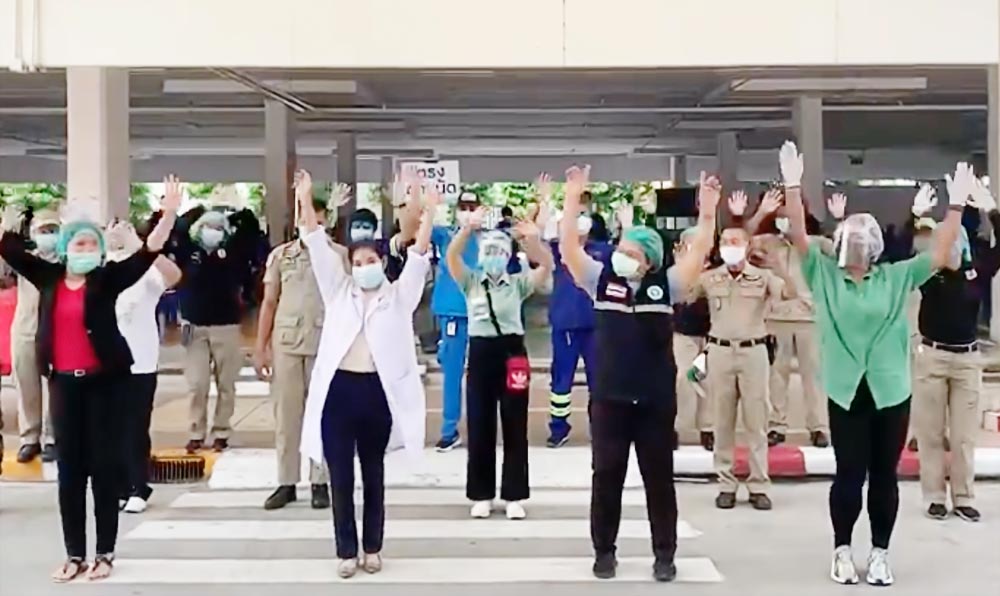 外国人観光客の1日でも早い受け入れを目指すプーケットでは、新型コロナウイルスと闘う医師や看護師らが団結のダンスを披露。バード・トンチャイの曲に合わせて踊った。