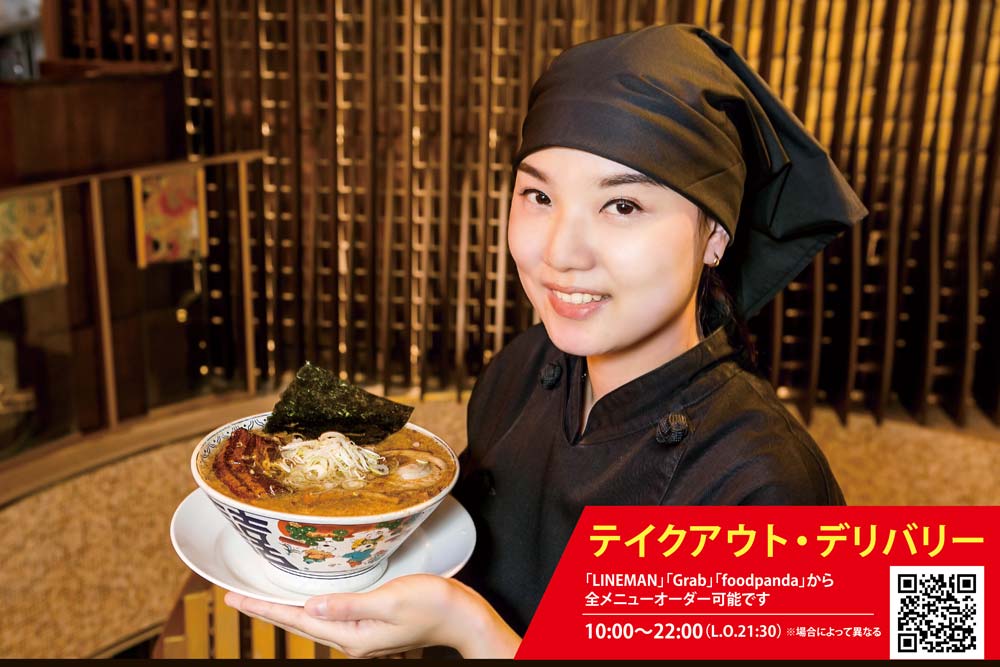 スイスに留学した経験を持ち、流暢な英語を話すバンコク出身の才色兼備なスタッフ。「各店舗の中でももっとも雰囲気が素敵なICONSIAM店へ一度お越しください! ばんからのらーめんを召し上がって、ハッピーになってください」。
