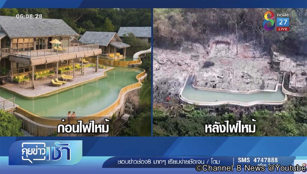 トラートのクッド島にある超高級リゾートホテルが全焼。