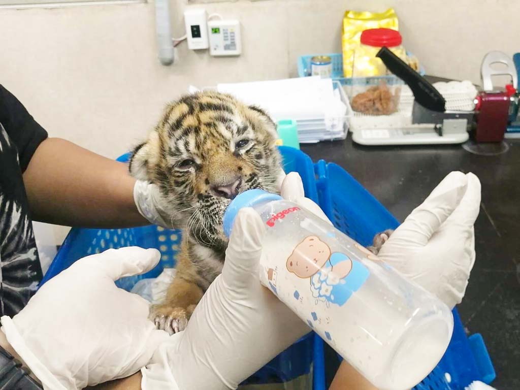 タイ国立公園・野生動物・植物保全局(DNP)の特殊部隊が5日、中部ノンタブリー県にあるデパートの駐車場で行われていた子トラの違法取引現場に突入。推定生後4カ月の子トラの確保に成功した。