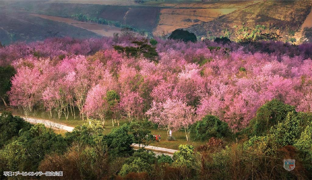 ピッサヌローク県プーヒンロンクラー国立公園内のプーロムローで桜が満開となっている。鮮やかなピンク色のヒマラヤザクラが咲き誇る景観が全長2kmにもおよび、見頃の時期は2月上旬まで続く。
