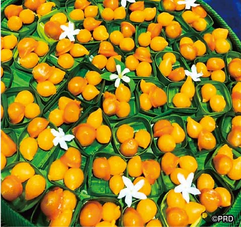 また、トーンイップ、トーンヨート、フォイトーンなど「金」を意味する「トーン」が付くタイの伝統菓子も、金運が上がる食べ物だといわれています。