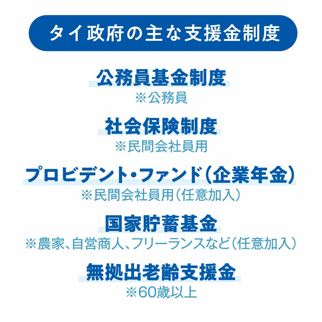 日本では「老後2,000万円問題」など年金や老後に関する問題が話題になっていますが、タイでも高齢化社会や都市部と農村部の格差などが深刻化しており、老後の生活に問題が生じる可能性が心配されています。そもそもタイには日本の「年金制度」のような仕組みはなく、日本の年金制度に近い「政府から国民への支援金」という形で制度を設けています。