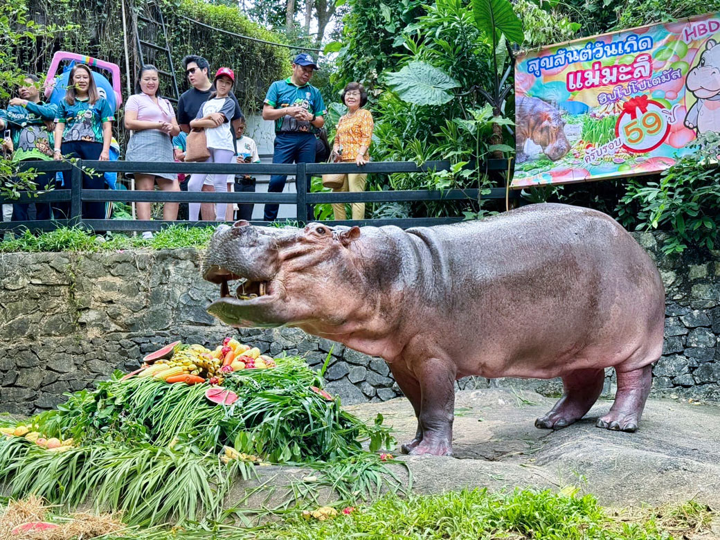 9月8日、チョンブリー県カオキアオ動物園にいる最高齢のカバ「メーマリ」が59歳を迎えた。当日は誕生日会が行われ、好物のスイカやドラゴンフルーツを使った誕生日ケーキが贈られた。メーマリは1967年にオランダからタイに贈られ、14頭の子どもを産んでいる。