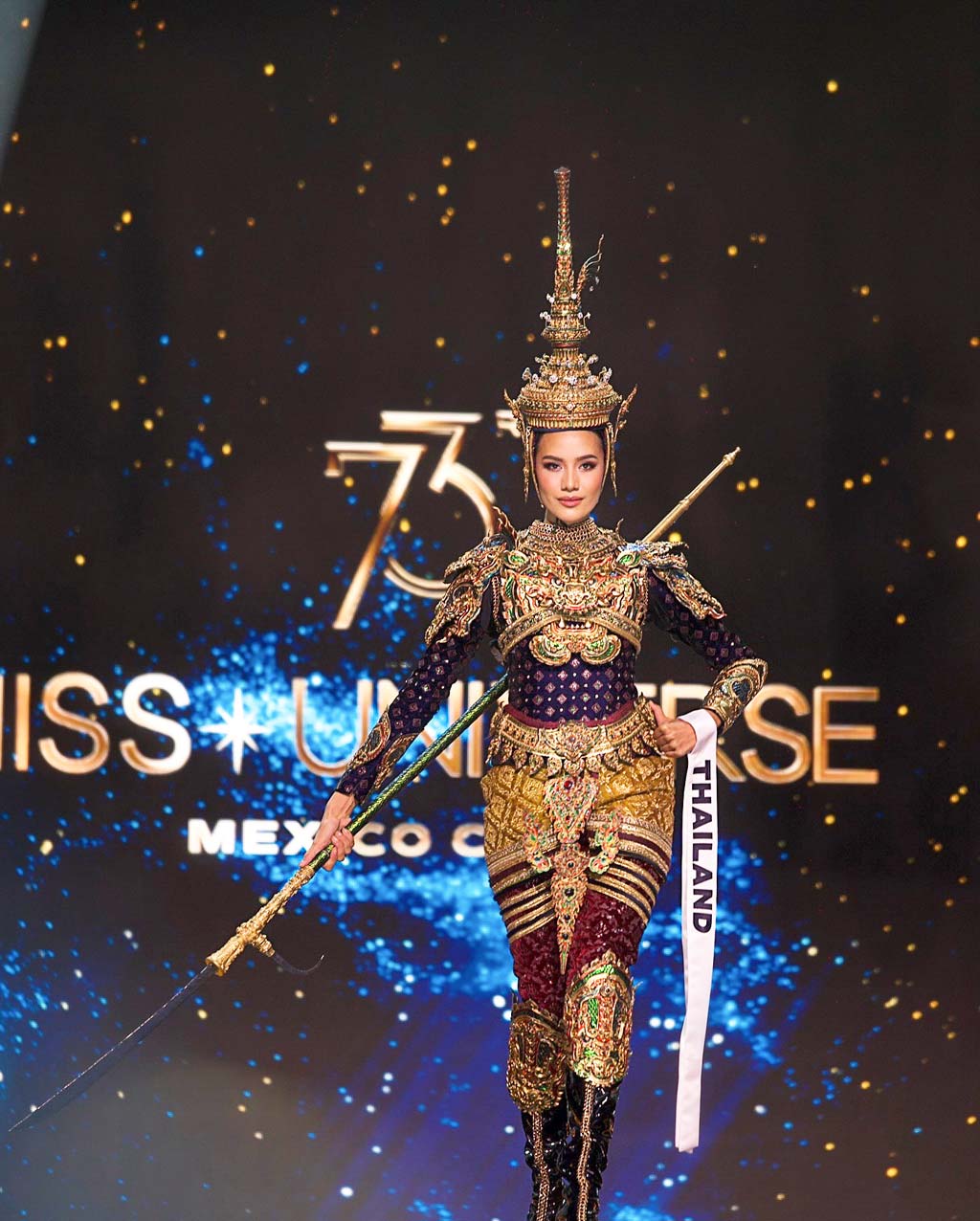 11月16日にメキシコで行われた「ミス・ユニバース2024」決勝。タイ代表のオパール=スチャーター・チュアンシーさん(タマサート大学在籍・21歳)が4位となった。決勝では、夫と国を守るために戦った女傑「スリヨータイ王妃」をモチーフにした国衣装「Siam Manustree」を着用した。