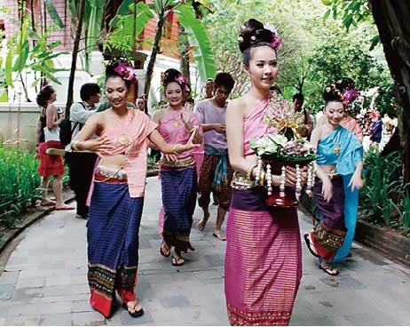 仏教式の場合、新郎新婦はタイの伝統衣装(女性はシワーライ等、男性はスア・プララチャターン等)を着用します。西洋式の場合、テーマカラーが設けられることもあり、たとえば「ピンク」なら、参列する女性はピンクのドレス、男性はピンクのネクタイのようにテーマカラーを取り入れるそうです。